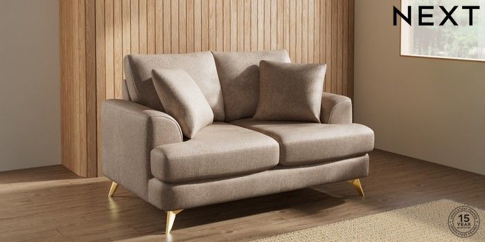 7.2.10 Parker 2 Seater Small Sofa Plush Chenille Mid Natural High Metal - Brass | Made Click here to use our website with more accessibility support, for example screen readers