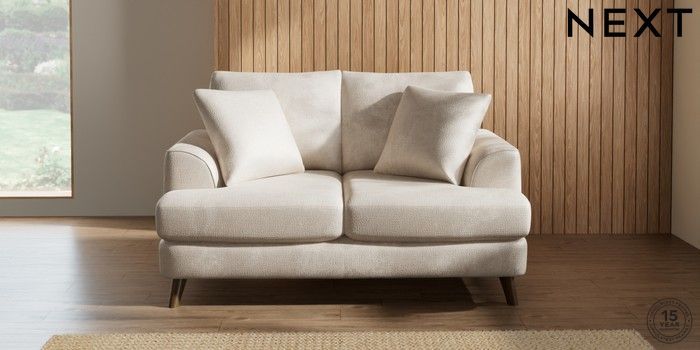 7.2.10 Parker 2 Seater Small Sofa Plush Chenille Oyster Low Retro Tapered - Mid | Made Click here to use our website with more accessibility support, for example screen readers