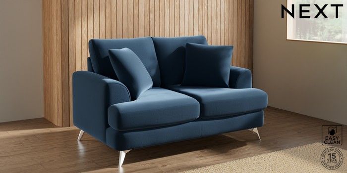 7.2.10 Parker 2 Seater Small Sofa Plush Velvet Easy Clean Airforce Blue High Metal - Chrome | Made Click here to use our website with more accessibility support, for example screen readers