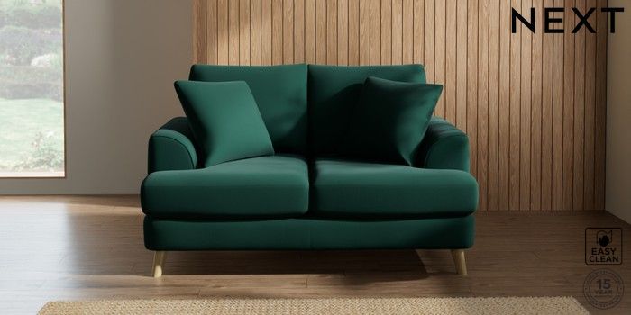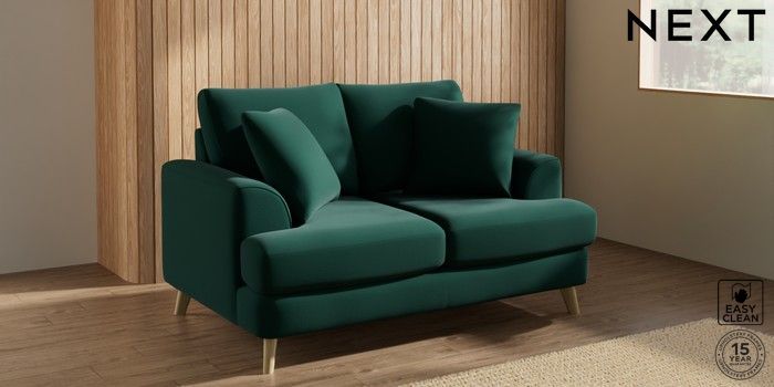 7.2.10 Parker 2 Seater Small Sofa Plush Velvet Easy Clean Bottle Green Low Retro Tapered - Light | Made Click here to use our website with more accessibility support, for example screen readers