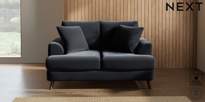 7.2.10 Parker 2 Seater Small Sofa Plush Velvet Easy Clean Charcoal Grey Low Retro Tapered - Mid | Made Click here to use our website with more accessibility support, for example screen readers