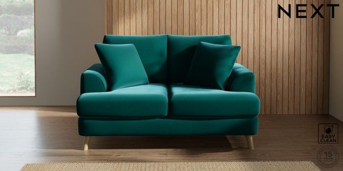 7.2.10 Parker 2 Seater Small Sofa Plush Velvet Easy Clean Juniper Green Low Retro Tapered - Light | Made Click here to use our website with more accessibility support, for example screen readers