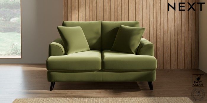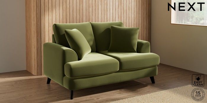 7.2.10 Parker 2 Seater Small Sofa Plush Velvet Easy Clean Mid Olive Green Low Retro Tapered - Dark | Made Click here to use our website with more accessibility support, for example screen readers