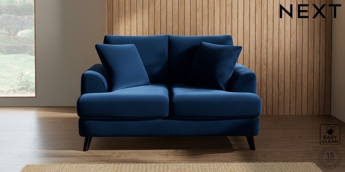 7.2.10 Parker 2 Seater Small Sofa Plush Velvet Easy Clean Navy Blue Low Retro Tapered - Dark | Made Click here to use our website with more accessibility support, for example screen readers