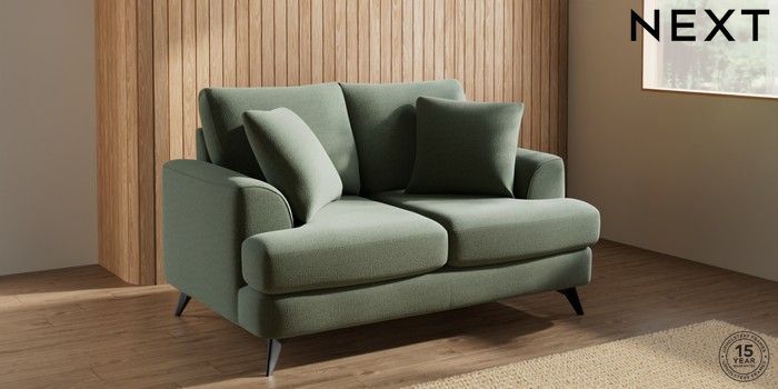7.2.10 Parker 2 Seater Small Sofa Relaxed Linen Look Dark Green High Metal - Black | Made Click here to use our website with more accessibility support, for example screen readers