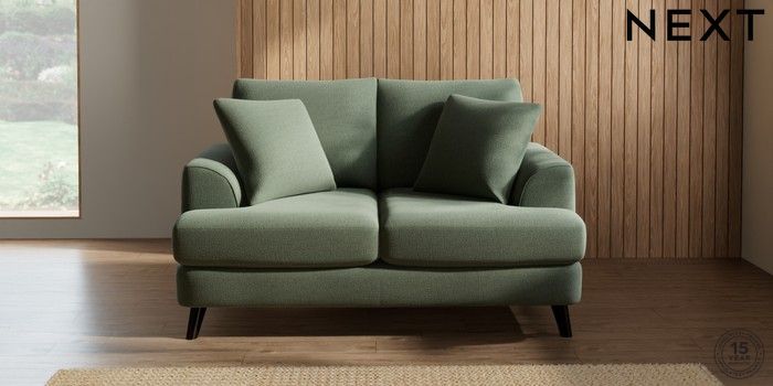 7.2.10 Parker 2 Seater Small Sofa Relaxed Linen Look Dark Green Low Retro Tapered - Dark | Made Click here to use our website with more accessibility support, for example screen readers