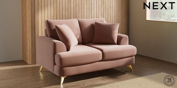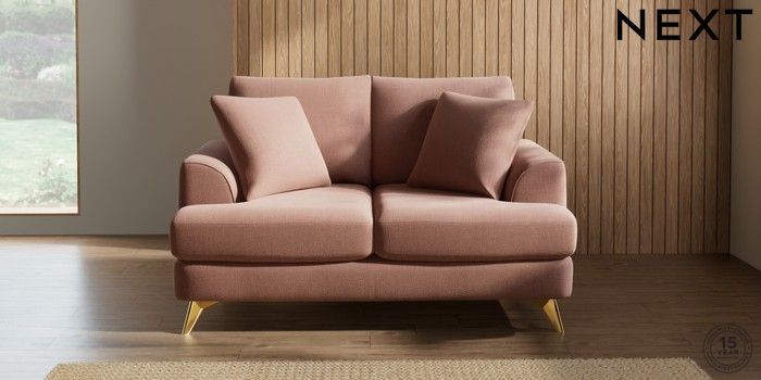 7.2.10 Parker 2 Seater Small Sofa Relaxed Linen Look Light Rust Brown High Metal - Brass | Made Click here to use our website with more accessibility support, for example screen readers