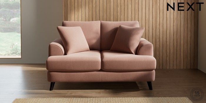 7.2.10 Parker 2 Seater Small Sofa Relaxed Linen Look Light Rust Brown Low Retro Tapered - Dark | Made Click here to use our website with more accessibility support, for example screen readers