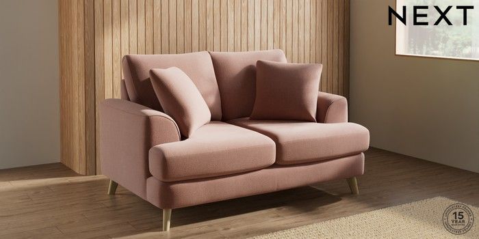 7.2.10 Parker 2 Seater Small Sofa Relaxed Linen Look Light Rust Brown Low Retro Tapered - Light | Made Click here to use our website with more accessibility support, for example screen readers