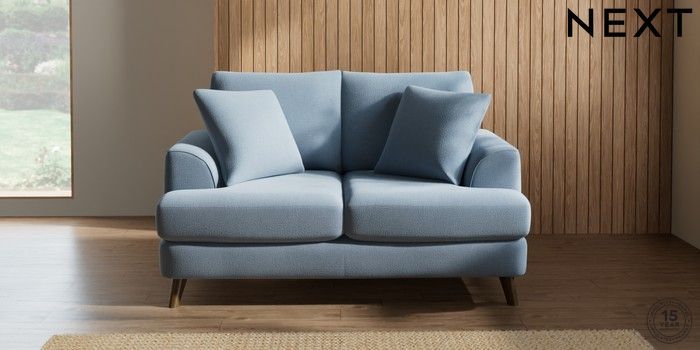 7.2.10 Parker 2 Seater Small Sofa Relaxed Linen Look Mid Blue Low Retro Tapered - Mid | Made Click here to use our website with more accessibility support, for example screen readers