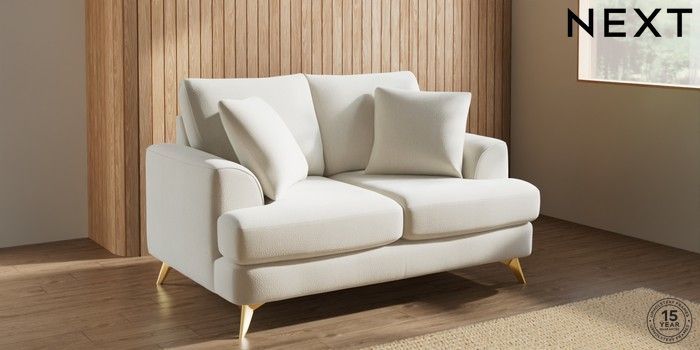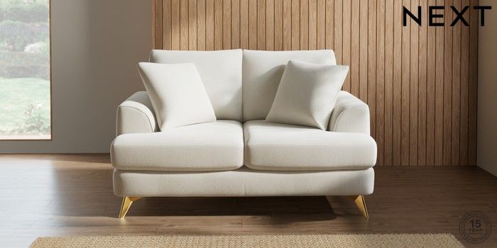 7.2.10 Parker 2 Seater Small Sofa Relaxed Linen Look Oyster High Metal - Brass | Made Click here to use our website with more accessibility support, for example screen readers