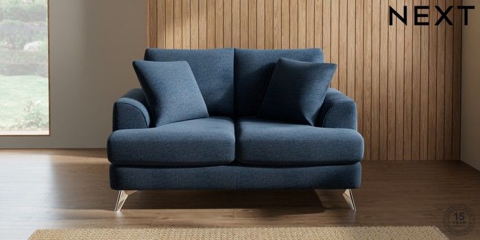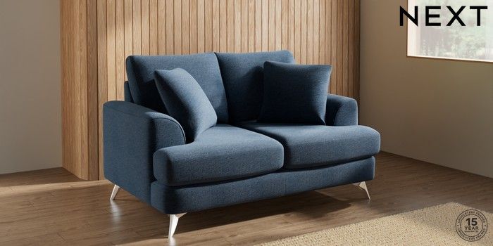 7.2.10 Parker 2 Seater Small Sofa Ripple Chenille Dark Blue High Metal - Chrome | Made Click here to use our website with more accessibility support, for example screen readers