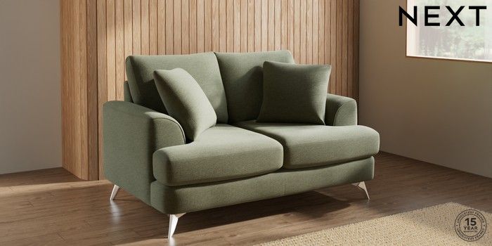 7.2.10 Parker 2 Seater Small Sofa Ripple Chenille Mid Moss Green High Metal - Chrome | Made Click here to use our website with more accessibility support, for example screen readers