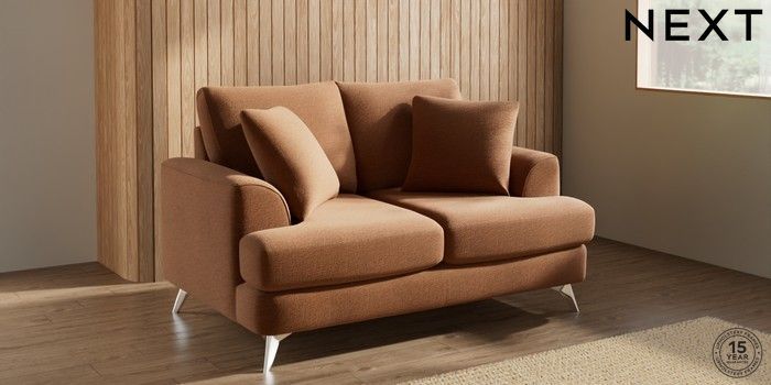 7.2.10 Parker 2 Seater Small Sofa Ripple Chenille Mid Rust Brown High Metal - Chrome | Made Click here to use our website with more accessibility support, for example screen readers