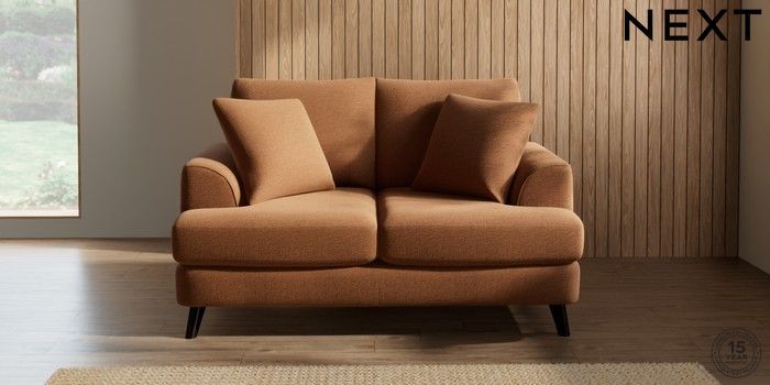 7.2.10 Parker 2 Seater Small Sofa Ripple Chenille Mid Rust Brown Low Retro Tapered - Dark | Made Click here to use our website with more accessibility support, for example screen readers