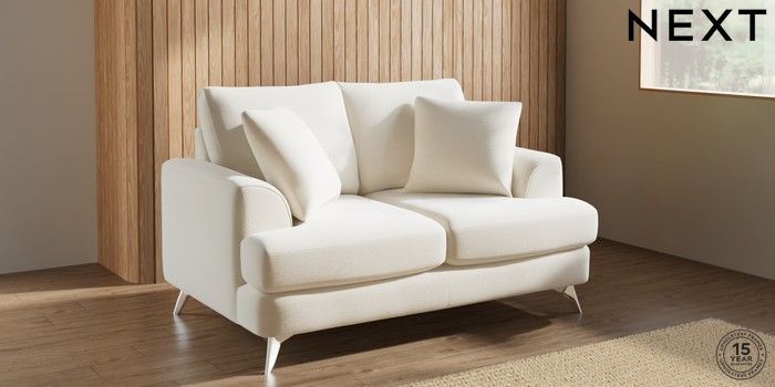 7.2.10 Parker 2 Seater Small Sofa Ripple Chenille Oyster High Metal - Chrome | Made Click here to use our website with more accessibility support, for example screen readers