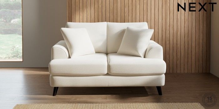 7.2.10 Parker 2 Seater Small Sofa Ripple Chenille Oyster Low Retro Tapered - Dark | Made Click here to use our website with more accessibility support, for example screen readers