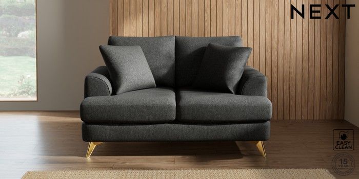 7.2.10 Parker 2 Seater Small Sofa Tweedy Blend Easy Clean Charcoal Grey High Metal - Brass | Made Click here to use our website with more accessibility support, for example screen readers