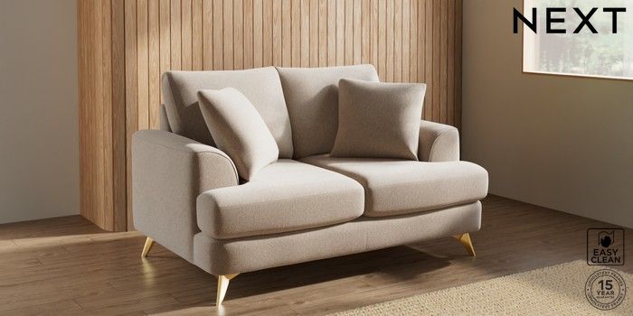 7.2.10 Parker 2 Seater Small Sofa Tweedy Blend Easy Clean Light Dove Natural High Metal - Brass | Made Click here to use our website with more accessibility support, for example screen readers