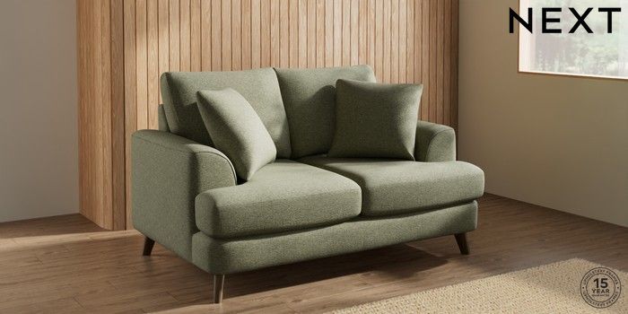 7.2.10 Parker 2 Seater Small Sofa Tweedy Chenille Mid Moss Green Low Retro Tapered - Mid | Made Click here to use our website with more accessibility support, for example screen readers