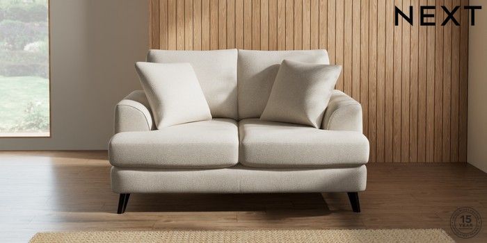 7.2.10 Parker 2 Seater Small Sofa Tweedy Chenille Oyster Low Retro Tapered - Dark | Made Click here to use our website with more accessibility support, for example screen readers