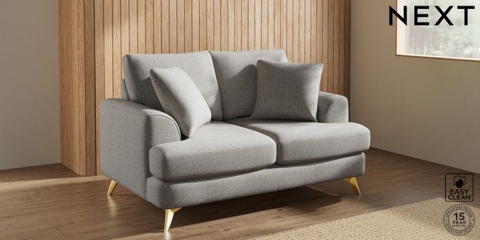7.2.10 Parker 2 Seater Small Sofa Woven Chenille Easy Clean Light Grey High Metal - Brass | Made Click here to use our website with more accessibility support, for example screen readers