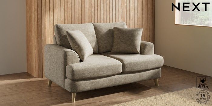 7.2.10 Parker 2 Seater Small Sofa Woven Chenille Easy Clean Mid Natural Low Retro Tapered - Light | Made Click here to use our website with more accessibility support, for example screen readers