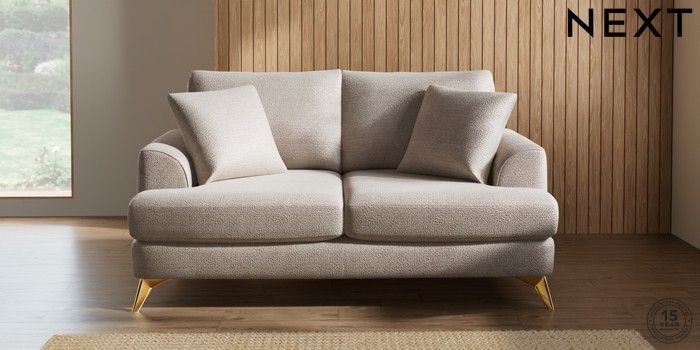 7.2.10 Parker 3 Seater Small Sofa Boucle Chenille Light Natural High Metal - Brass | Made Click here to use our website with more accessibility support, for example screen readers