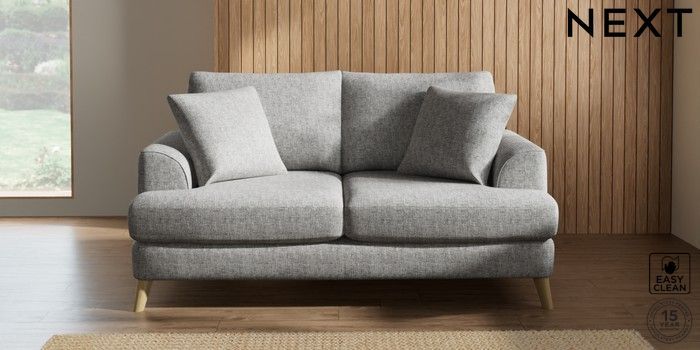 7.2.10 Parker 3 Seater Small Sofa Chunky Boucle Easy Clean Light Grey Low Retro Tapered - Light | Made Click here to use our website with more accessibility support, for example screen readers