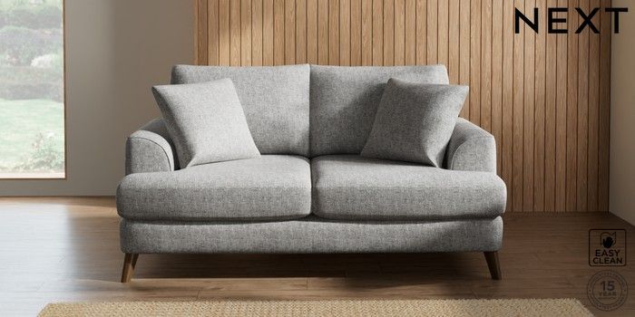 7.2.10 Parker 3 Seater Small Sofa Chunky Boucle Easy Clean Light Grey Low Retro Tapered - Mid | Made Click here to use our website with more accessibility support, for example screen readers