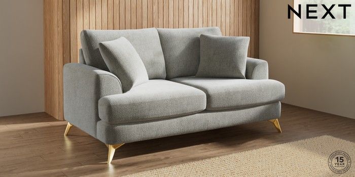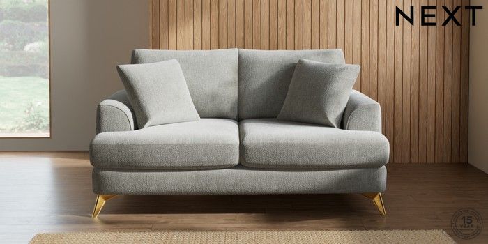 7.2.10 Parker 3 Seater Small Sofa Chunky Chenille Light Grey High Metal - Brass | Made Click here to use our website with more accessibility support, for example screen readers