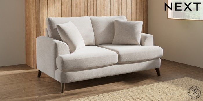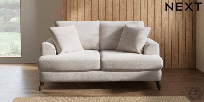 7.2.10 Parker 3 Seater Small Sofa Chunky Chenille Oyster Low Retro Tapered - Mid | Made Click here to use our website with more accessibility support, for example screen readers