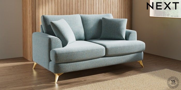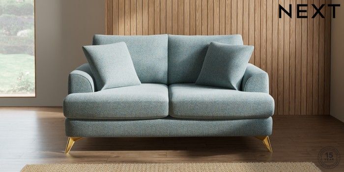 7.2.10 Parker 3 Seater Small Sofa Chunky Marl Mid Blue High Metal - Brass | Made Click here to use our website with more accessibility support, for example screen readers