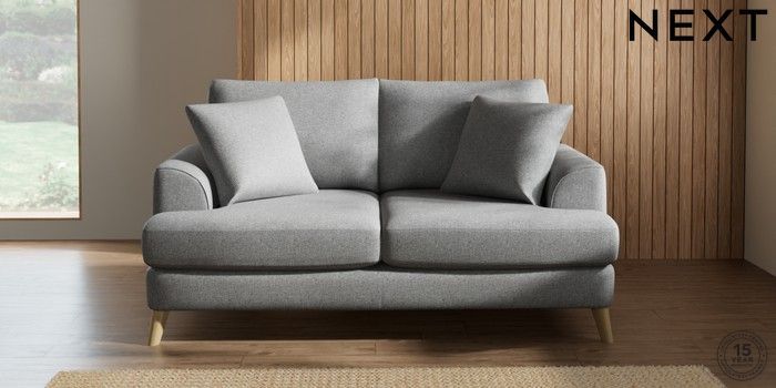 7.2.10 Parker 3 Seater Small Sofa Chunky Weave Mid Grey Low Retro Tapered - Light | Made Click here to use our website with more accessibility support, for example screen readers
