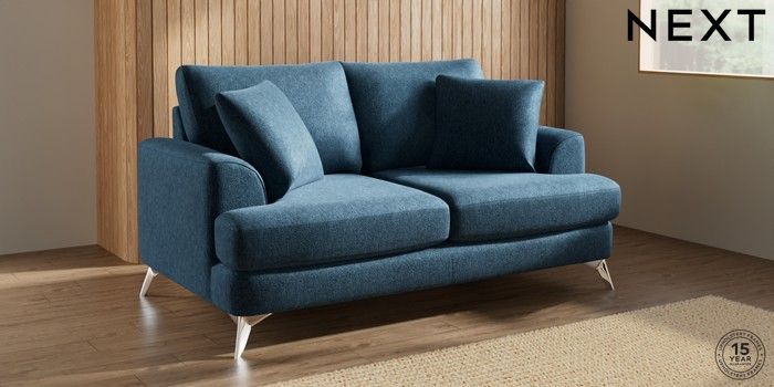 7.2.10 Parker 3 Seater Small Sofa Cotswold Chenille Dark Blue High Metal - Chrome | Made Click here to use our website with more accessibility support, for example screen readers
