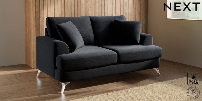 7.2.10 Parker 3 Seater Small Sofa Fine Chenille Easy Clean Black High Metal - Chrome | Made Click here to use our website with more accessibility support, for example screen readers