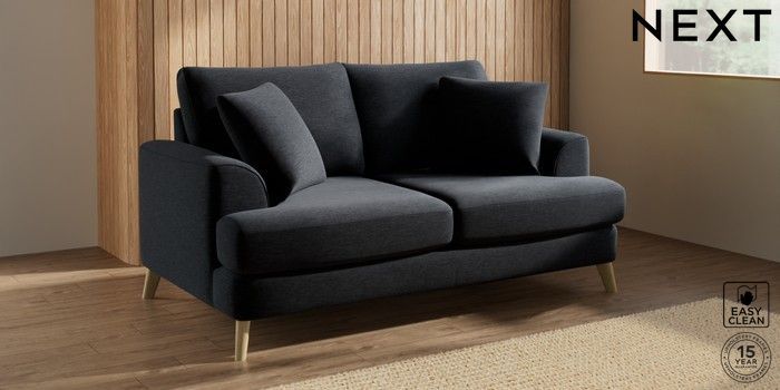7.2.10 Parker 3 Seater Small Sofa Fine Chenille Easy Clean Black Low Retro Tapered - Light | Made Click here to use our website with more accessibility support, for example screen readers