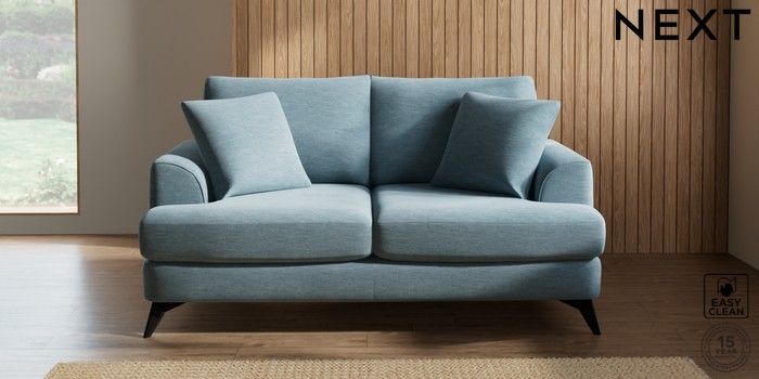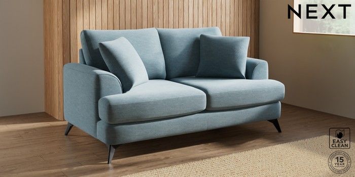 7.2.10 Parker 3 Seater Small Sofa Fine Chenille Easy Clean Mid Blue High Metal - Black | Made Click here to use our website with more accessibility support, for example screen readers