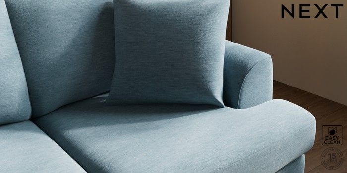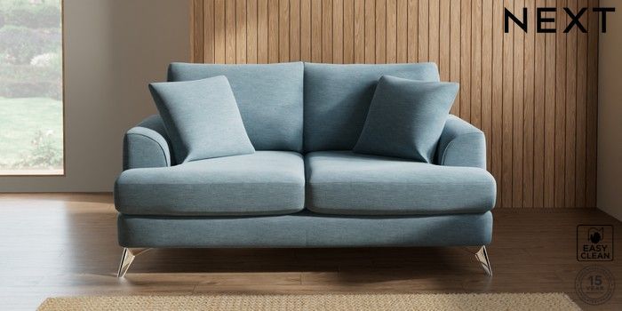 7.2.10 Parker 3 Seater Small Sofa Fine Chenille Easy Clean Mid Blue High Metal - Chrome | Made Click here to use our website with more accessibility support, for example screen readers