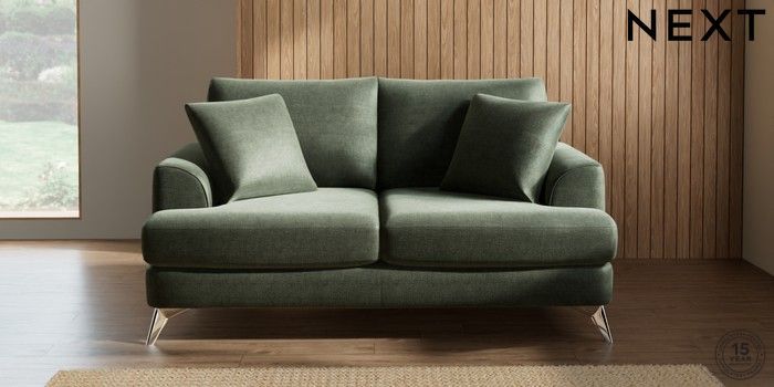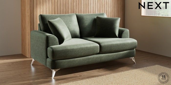 7.2.10 Parker 3 Seater Small Sofa Luxe Chenille Mid Green High Metal - Chrome | Made Click here to use our website with more accessibility support, for example screen readers