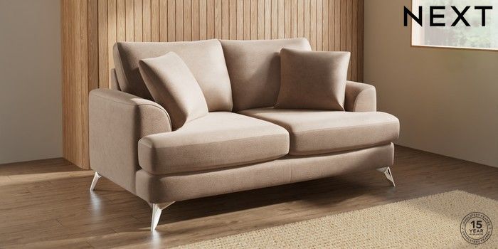7.2.10 Parker 3 Seater Small Sofa Luxe Chenille Mid Natural High Metal - Chrome | Made Click here to use our website with more accessibility support, for example screen readers