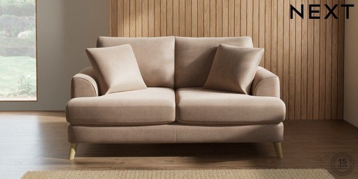 7.2.10 Parker 3 Seater Small Sofa Luxe Chenille Mid Natural Low Retro Tapered - Light | Made Click here to use our website with more accessibility support, for example screen readers