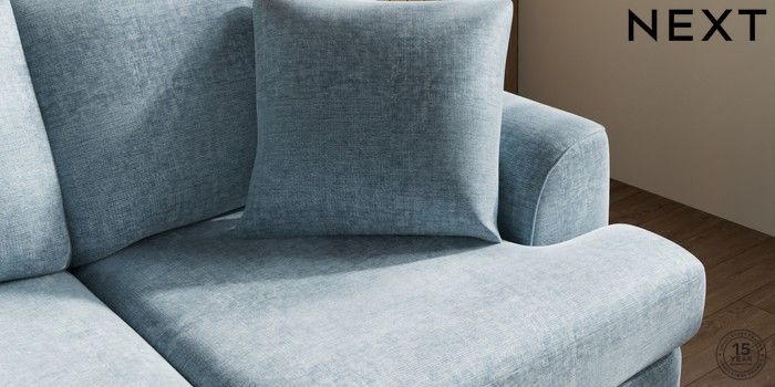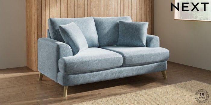 7.2.10 Parker 3 Seater Small Sofa Plush Chenille Light Blue Low Retro Tapered - Light | Made Click here to use our website with more accessibility support, for example screen readers