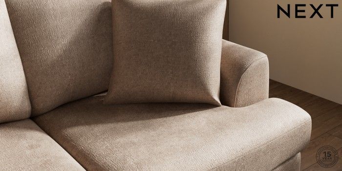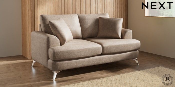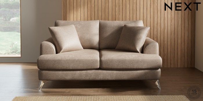 7.2.10 Parker 3 Seater Small Sofa Plush Chenille Mid Natural High Metal - Chrome | Made Click here to use our website with more accessibility support, for example screen readers