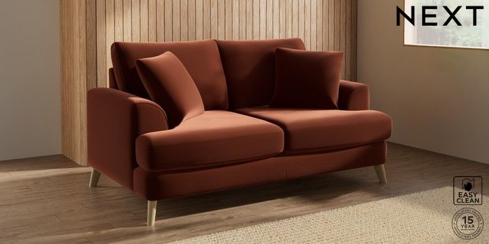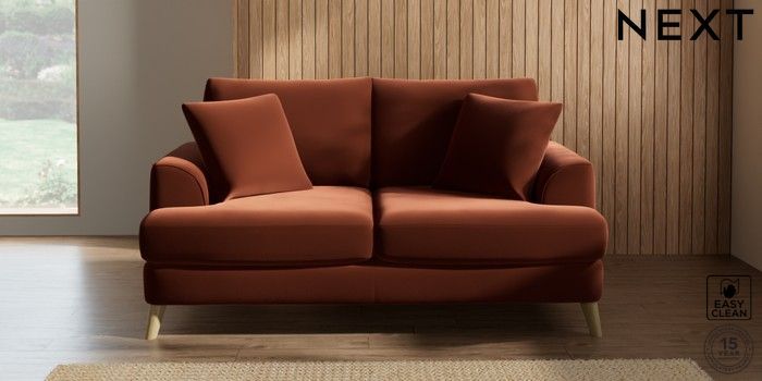7.2.10 Parker 3 Seater Small Sofa Plush Velvet Easy Clean Ginger Orange Low Retro Tapered - Light | Made Click here to use our website with more accessibility support, for example screen readers