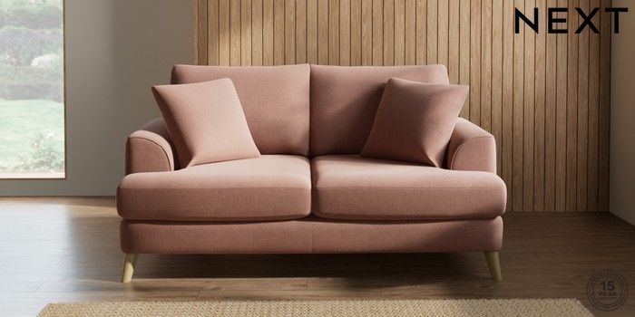 7.2.10 Parker 3 Seater Small Sofa Relaxed Linen Look Light Rust Brown Low Retro Tapered - Light | Made Click here to use our website with more accessibility support, for example screen readers
