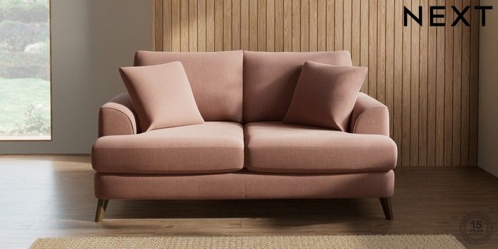 7.2.10 Parker 3 Seater Small Sofa Relaxed Linen Look Light Rust Brown Low Retro Tapered - Mid | Made Click here to use our website with more accessibility support, for example screen readers