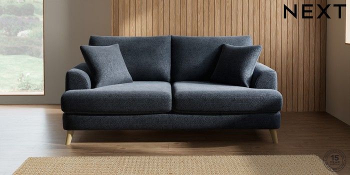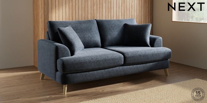 7.2.10 Parker 3 Seater Sofa Boucle Chenille Dark Slate Blue Low Retro Tapered - Light | Made Click here to use our website with more accessibility support, for example screen readers