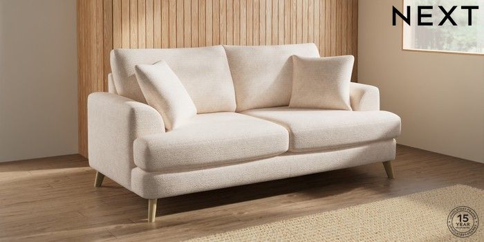 7.2.10 Parker 3 Seater Sofa Boucle Chenille Oyster Low Retro Tapered - Light | Made Click here to use our website with more accessibility support, for example screen readers