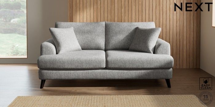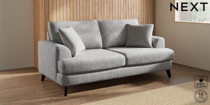 7.2.10 Parker 3 Seater Sofa Chunky Boucle Easy Clean Light Grey Low Retro Tapered - Dark | Made Click here to use our website with more accessibility support, for example screen readers